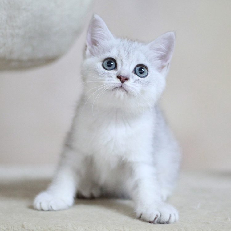 英短銀漸層體型中等,雄性體重通常為5-8千克,雌性為4-6千克。面部和眼睛圓潤,眼睛通常為藍(lán)色、綠色、黃綠色、黃色。四肢粗壯,胸部寬闊,尾巴粗大。擁有濃密的雙層被毛,背毛的六分之一到八分之一為灰黑色,其他部分為白色,具有獨(dú)特的銀灰色光澤,分為“尖端著色”或“陰影著色”。